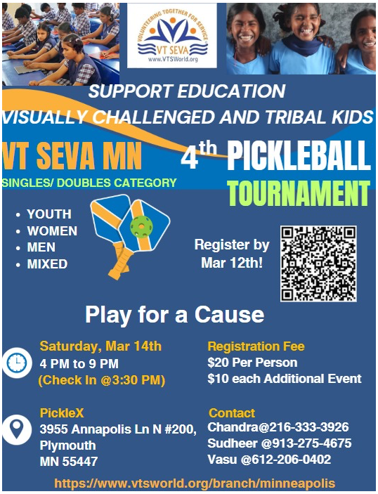 Register here --> https://bit.ly/VTSevaMNPickleBallSpring26