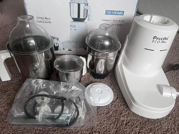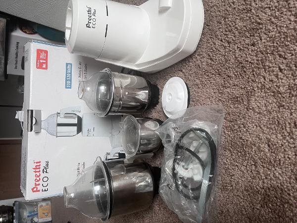 Preethi Mixie Grinder Eco plus with 3 Jars and spare parts with bush , tools, spare lid and rubber.